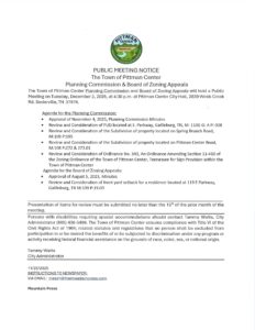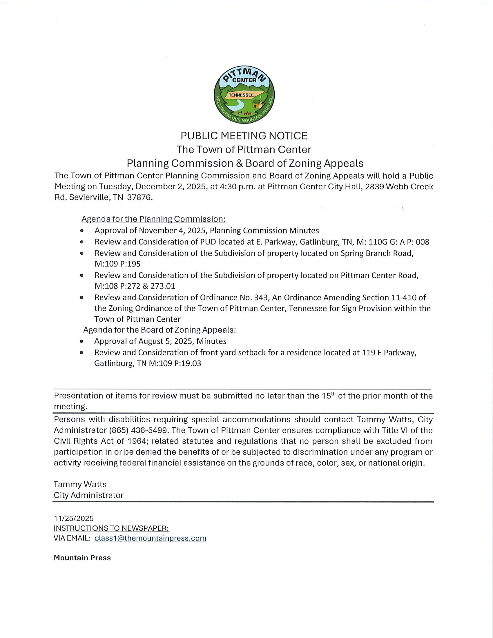 The Planning Commission meeting date will be Tuesday, December 2, 2025 at 4:30 p.m.