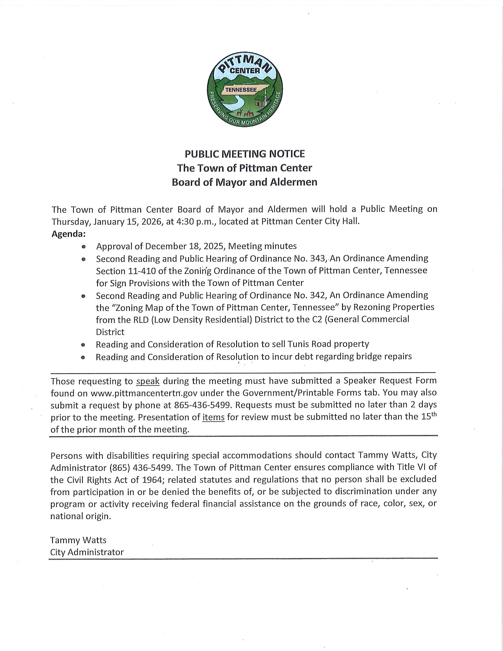 The Board of Mayor and Aldermen’s next meeting date will be Thursday, January 15, 2026, at 4:30 p.m.